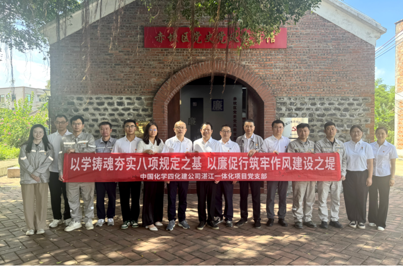為深入貫徹中央八項規定精神,強化黨員干部廉潔自律意識,近日,中國化學四化建黨委巡察組臨時黨支部與湛江一體化項目黨支部聯合開展“紅色血脈礪初心,八項規定強作風”主題黨日活動,組織黨員走進赤坎區廉政教育基地,探尋紅色歷史中的清廉力量,筑牢思想道德防線。