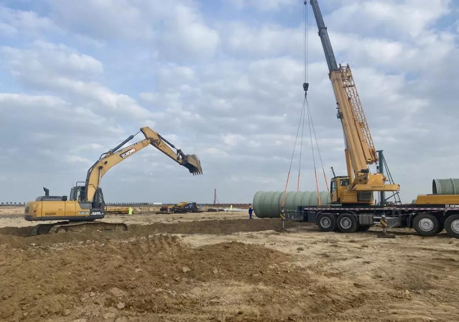 此次開工的公用工程項目主要包括13、14標段的給排水及消防管網工程。由于工程地管口徑大,其中海水管、雨水管、循環水管最大直徑分別為DN3200、DN4200、DN2600,多條管線并排放置,基坑開挖深度超過9米,總長度超過26千米,工程量大,標準要求高。同時,又因施工區域為填海造陸,降水排水工作任務重,施工難度增加。