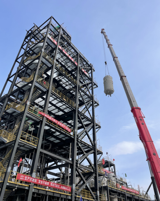 西部公司西部新材料項(xiàng)目完成4臺聚合反應(yīng)釜吊裝